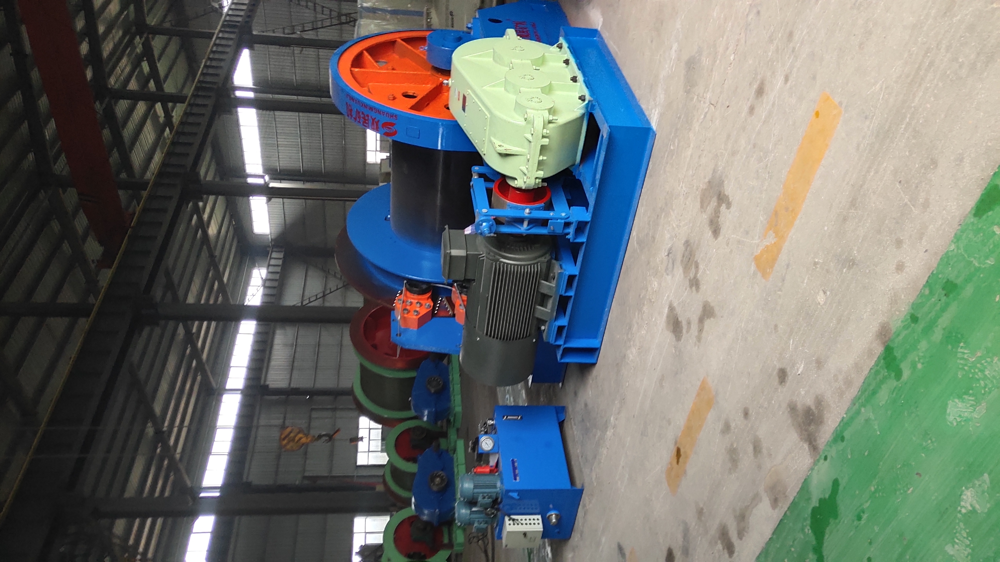 本絞車主要用于煤礦、金屬礦和非金屬礦豎井井筒掘進(jìn)時(shí)懸吊吊盤、水泵、水管、注漿泵、風(fēng)筒等掘進(jìn)設(shè)備和張緊穩(wěn)繩,該絞車系雙鋼絲繩懸吊。將減速機(jī)上的差動(dòng)手把放在差動(dòng)位置,若張緊穩(wěn)繩,可使兩根穩(wěn)繩的張緊力保持相等;若懸吊水管、注漿管、風(fēng)筒等管類設(shè)備,可保證其被懸吊管類設(shè)備與地面保持垂直的狀態(tài)。如果懸吊吊盤等盤狀設(shè)備,需將其差動(dòng)手把放在直通位置,才能實(shí)現(xiàn)兩繩繩速的一致。