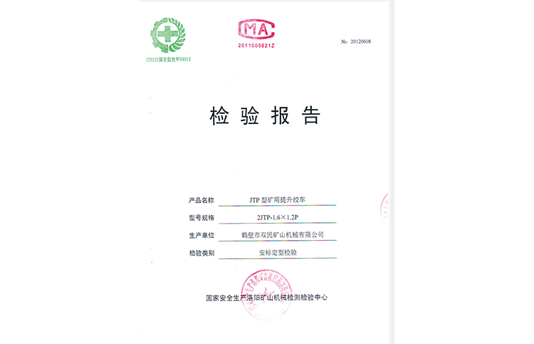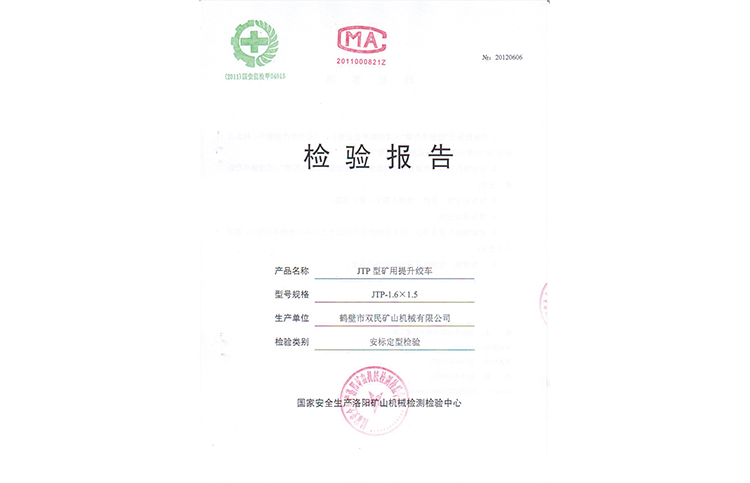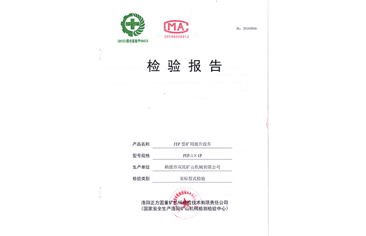 檢驗(yàn)報(bào)告JTP型礦用提升絞車
