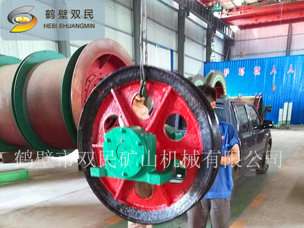 1、雙槽懸吊天輪和單槽懸吊天輪的結(jié)構(gòu)主要有繩輪、固定軸、及軸承座組成。繩輪內(nèi)孔鑲嵌有合金銅套,工作時(shí)繞軸作旋轉(zhuǎn)運(yùn)動(dòng),輪轂上裝有油杯,供軸與銅套之間潤(rùn)滑用。雙槽天輪有兩個(gè)繩輪,其間裝有調(diào)整圈,可以對(duì)兩輪之間的距離進(jìn)行調(diào)整。