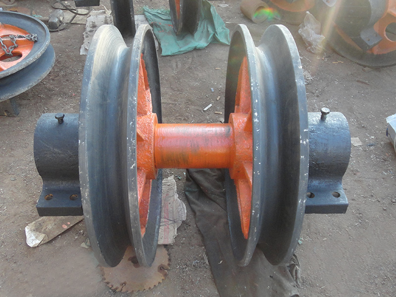 3、雙槽懸吊天輪采用繩輪與軸承座可調(diào)型式,使用時(shí)根據(jù)實(shí)際情況進(jìn)行選用,還可根據(jù)情況,另行組合設(shè)計(jì),可不受規(guī)定品種和可調(diào)。